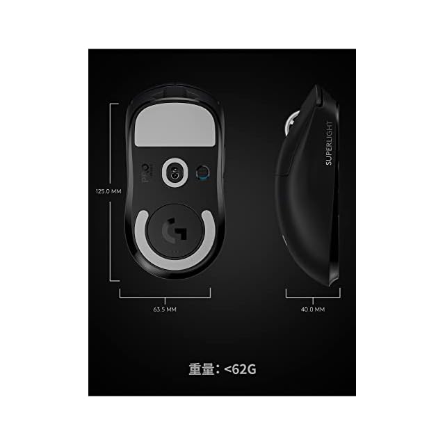 【ロジクールG史上最軽量のワイヤレスゲーミングマウス】驚きの63g未満の超軽量、GPROゲーミングマウス(80g)より更に25%軽量化され、新しいGPROは PRO X SUPERLIGHTの名を冠した。