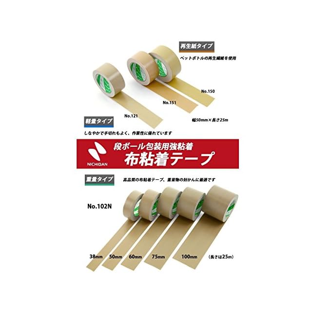 ニチバン 布テープ 中軽量物封かん用 2巻入 50mm×25m 121-502P