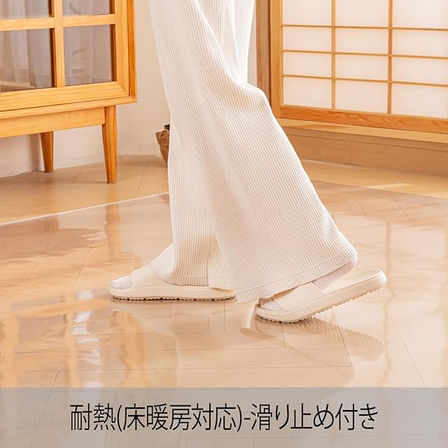 表面エンボス加工: ダイニングマットの表面にはエンボス処理が施されており、汚れに強く拭き取りやすくなっています。 帯電防止機能も付き、埃がつきにくく掃除しやすいです。透明で床が若干透けて見えるので、圧迫感がなくお部屋の雰囲気を損ないません。キッチン違和感なくマッチします。また、耐熱性があるので床暖房の上でも使用OK.