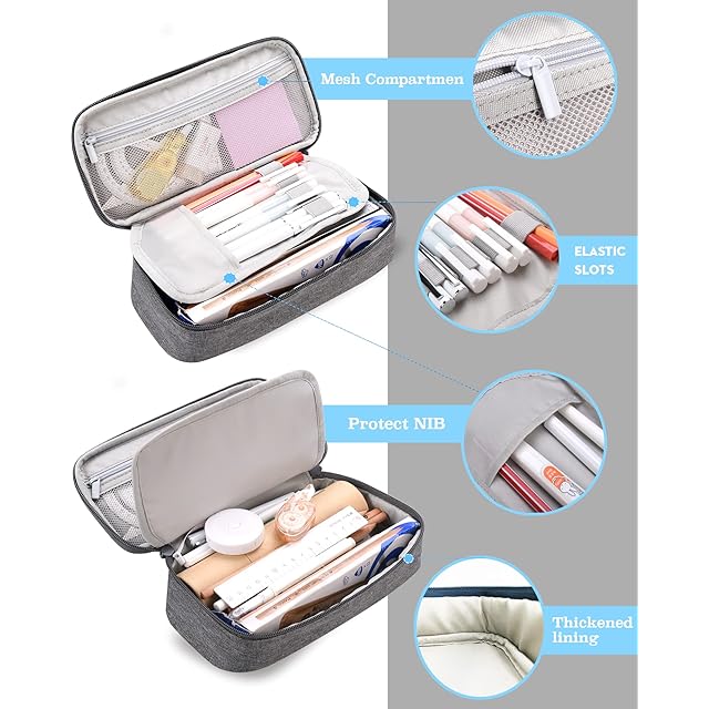 YOKUMA 鉛筆ケース 大容量 鉛筆ポーチ 美しいジッパー鉛筆ボックス 新学期用品 大学生 子供 ティーン 大人用, パープル, 筆箱 (Gray)