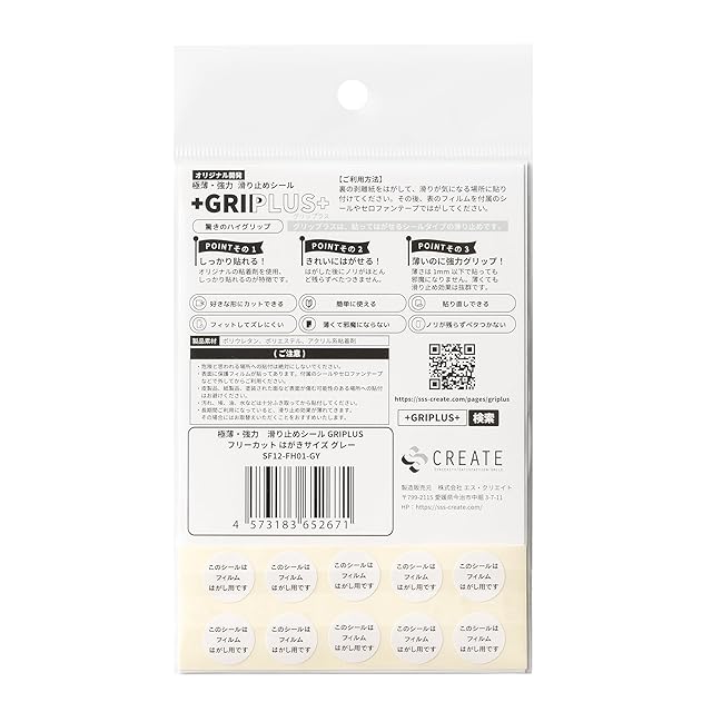 GRIPLUS(グリップラス) 極薄・強力 滑り止めシール フリーカット はがきサイズ (グレー 1)