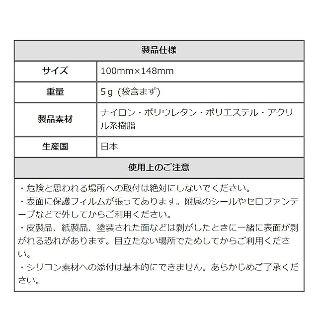 【上手な使い方】・貼り付ける先の素材と形を確認してください。・貼り付ける前にキレイに掃除してください。・貼り付けた後、少し時間をおいてください。・角に少し丸みをつけてください・表面フィルムをはがしてください。