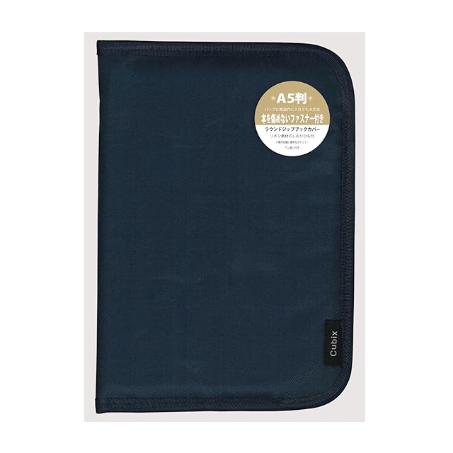 エムプラン ブックカバー キュービックス ラウンドジップN A5判サイズ ネイビー 114042-08-145