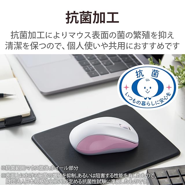 エレコム マウス ワイヤレスマウス Bluetooth 3ボタン Mサイズ 抗菌 ピンク M-BY11BRKPN