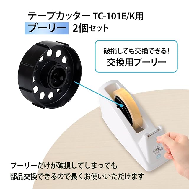 100%再生材使用のテープカッタープーリーです。【対応機種】TC-101E、TC-101K(抗菌剤配合タイプ)
