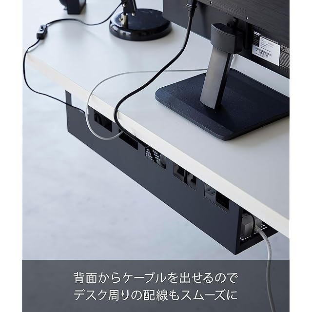 山崎実業(Yamazaki) デスク下 天板ケーブルラック ロング ブラック 約W63.5×D12×H17cm タワー tower ケーブル 電源タップ 収納 ネジで固定 カバー付き 4479