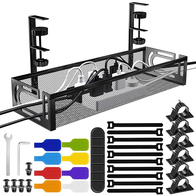 【12kg耐荷重×3分間で設置!】企業向けに耐久性を追求。 丈夫な高炭素鋼フレームに二重ラッカー塗装を施し、防水性と錆防止性能を高めています。12kgに耐えるビジネスグレード品質、耐摩耗性のシリコンパッドを標準装備して安定性を高めました。1年間の付きで、法人向けの購入にも安心です。クランプ式固定でデスク天板(厚さ1~5cm 対応)を挟み込み、底部のハンドルを回すだけで強固に固定。女性の方でも簡単にセットでき、家具に傷を付ける心配はありません。テレビ裏 収納・テーブル下収納・キャビネット下・コード まとめる・コンセント隠しなど、あらゆる場面で活躍します。