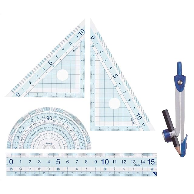 【セット内容】直定規、三角定規、分度器、鉛筆用コンパス(自動中心器付)