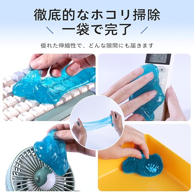 VICSUN(80g×4袋)新型 抗菌・除菌 キーボード 掃除 スライム ジェルクリーナー 強吸着 ゴミ ホコリ 車内清掃 部屋の隅など簡単お掃除