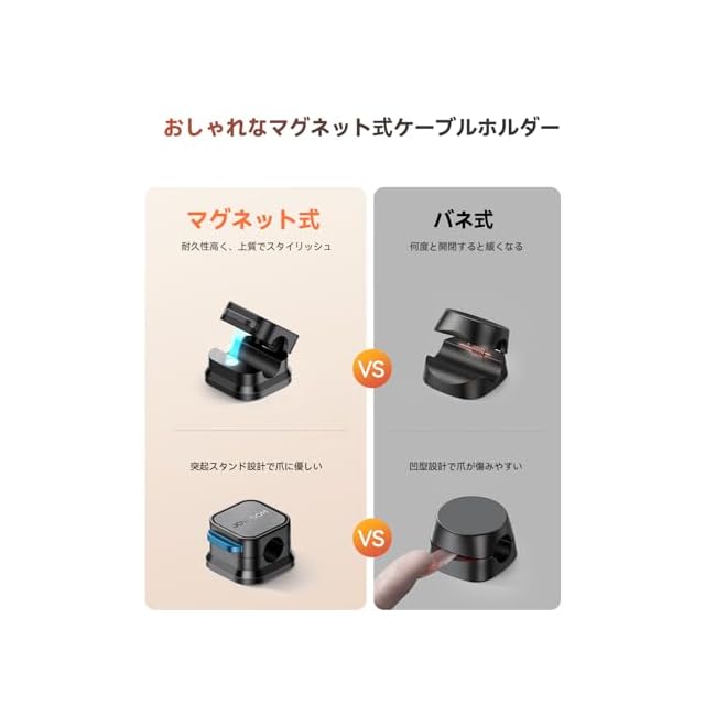 「12個セット·業界初!マグネット式」ケーブルホルダー JOYROOM ケーブルクリップ 配線止め 配線整理 ケーブルスムーズ調整可能 コードホルダー デスク周り コードクリップ 貼り付け 強力粘着 USB配線収納 卓上 デスク 机 壁 車 ナイトテーブル すっきり USB-C ケーブル固定 type-c マウスライン キーボードライン 電源コード ヘッドフォンケーブル などに対応