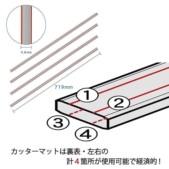 刃を受ける所が4箇所(1面で左右2箇所×表裏2面)あるので1本で長く使えて経済的です。