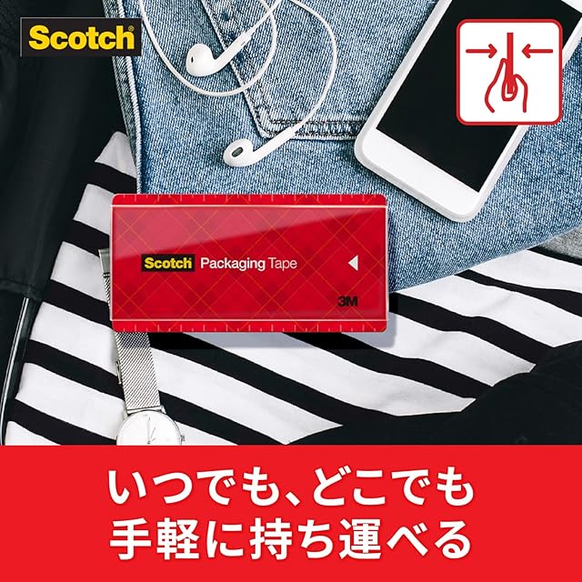 3M スコッチ ガムテープ ポケットサイズ 梱包テープ 手でまっすぐ切れて音が静か ポータブル 7m 3852FLT-RD