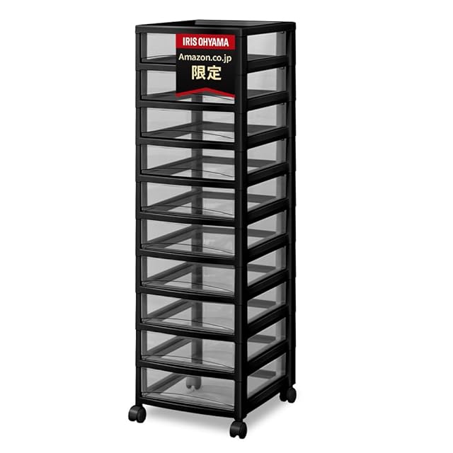【.co.jp限定】アイリスオーヤマ フロアケース スーパークリアチェスト 再生材使用 レターケース 10段 キャスター付き ブラック