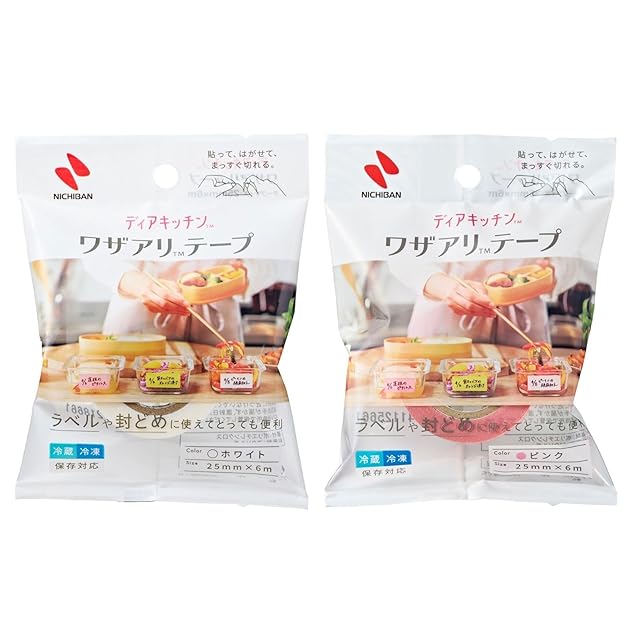 ニチバン ディアキッチン ワザアリテープ 詰め替え 2個セット ホワイト ピンク 25mm×6m DK-WAN255 DK-WAN2511|作り置き 冷凍 保存 封止め 書き込める 手で切れる 【限定セット】