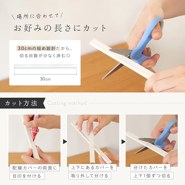 【配線を入れ替え/カットしてサイズ調整可能】配線の変更が必要な場合も、カバーだけを外して中のケーブルを簡単に入れ替えできます。取り外しと再取り付けが簡単な設計なので、後からの配線追加や変更もスムーズに行えます。また必要に応じてカットが可能。デスクやテレビ台周り、オフィススペースなど、どんな場所でもスッキリとした配線整理が可能です。長さ調整が自在なので、あらゆる場面で役立ちます。