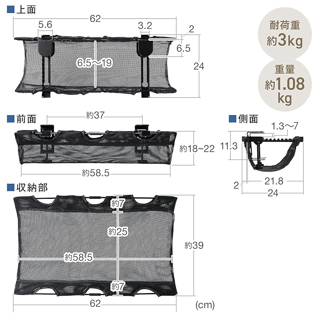 商品タイプ:クランプ固定(幅62cm)