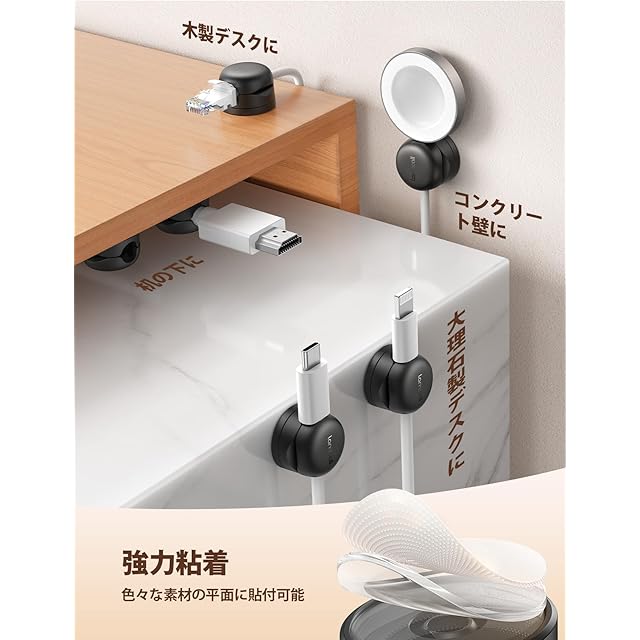 【⭐360°回転可能】第1世代製品のフィードバックにより、新しい第6世代バネ式ケーブルホルダーを発売しました。粘着テープ留めタイプのをつかってましたが、一旦貼ってしまうとケーブルの角度が固定になって不便だったのですが、本体は特別な360°回転設計を採用し、引っ張ったケーブルの向きを自由に変えられます。貼り付けの向きは気にする必要がありませんので、使用方向を後から変更することの難しさを解決します。注意❗❗新品未開封の回転部分が固すぎて回さないという可能性がありますが、何度か商品を使用するとスムーズになります。