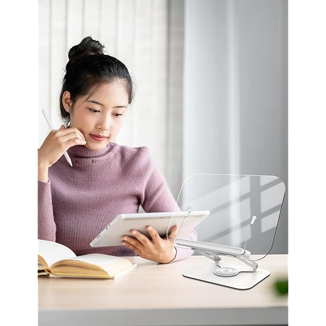 ブックスタンド 卓上 書見台 360°回転 読書台 絵描き用 傾斜台 角度/高さ調整可能 勉強/製図/学習/読書スタンド 折りたたみ式 コンパクト 教科書/楽譜/雑誌/料理本/タブレット/ノートパソコンスタンド 置き 机上スタンド アクリル 透明 (ホワイト)