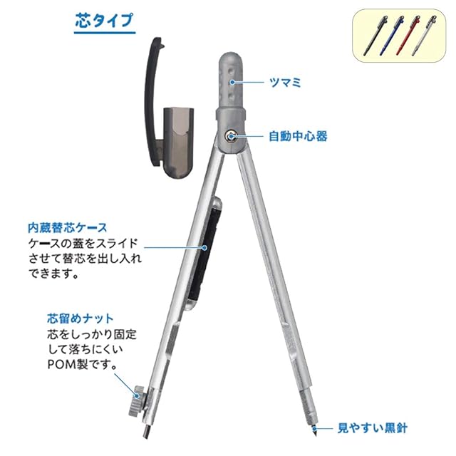 ペンケースに収納できるスリムなペンタイプのコンパス