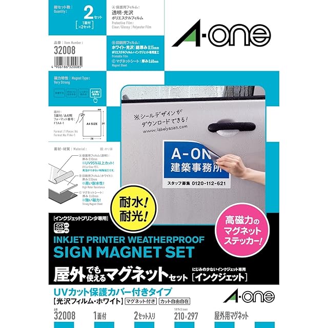 エーワン マグネット ラベル 屋外用 UVカバー付 光沢フィルム インクジェット A4 2セット 32008