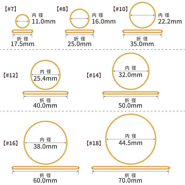 #16( 16番 ): 内径約38mm / 折径約60mm / 切幅約1.1mm / 厚さ約1.1mm