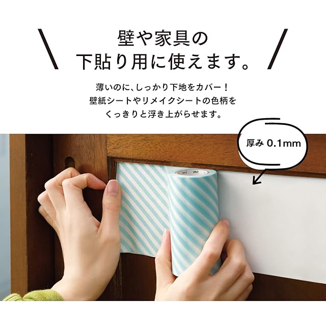 【何度貼っても貼りなおせる】カモ井加工紙のマスキングテープは、何度貼っても貼りなおすことができます。しわが入りにくいため、壁などの広い面も貼りやすく、一人でも貼ることができます。