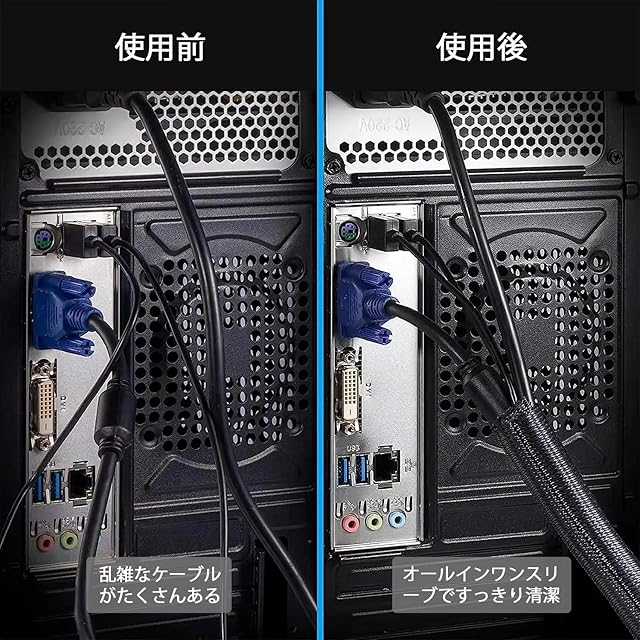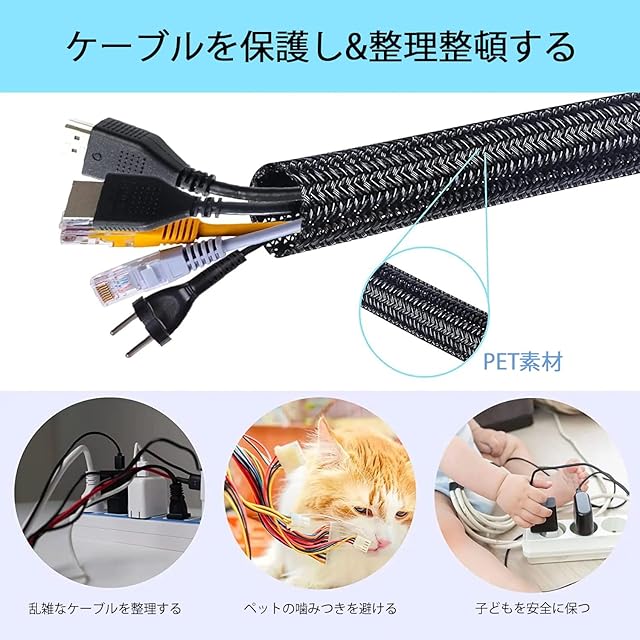【カット可能でどんな長さにも適しています】ケーブル収納スリーブはカット可能で、好きな長さにカットし、端をライターで焼くことで広がるのを防ぎ、見た目を良く保つことができます。