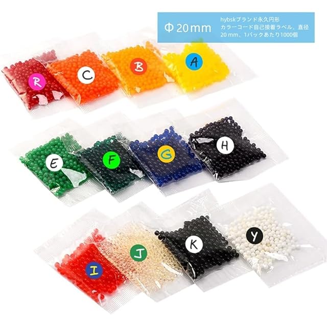 丸シールサイズ:直径20㎜ 数量:50シート(1シート20シール、20シール×50シート、合計1000シール片入り)カラー:10色