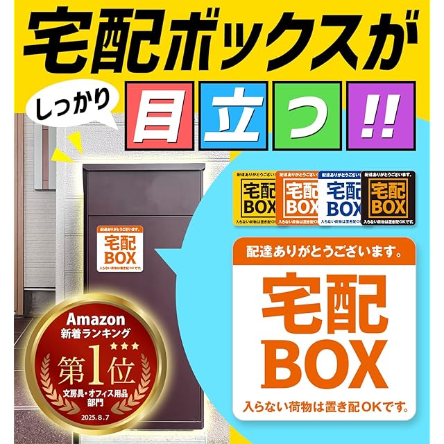 【見やすい日本語表示】目立つデザインの「宅配BOX」に加え「配達ありがとうございます」「入らない荷物は置き配OKです」のメッセージ付き。配達員にすぐ伝わる日本語表示。誤配や再配達の防止に役立ちます。玄関にもなじむシンプルデザイン。