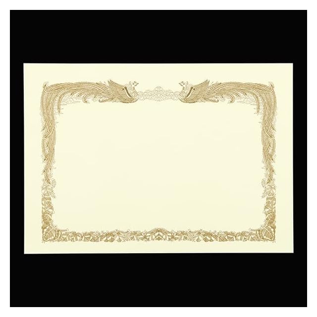レーザープリンター・インクジェットプリンター兼用の賞状用紙です。落ち着いた高級感のあるクリーム色の用紙と立体感のある本格的な鳳凰枠の賞状です。