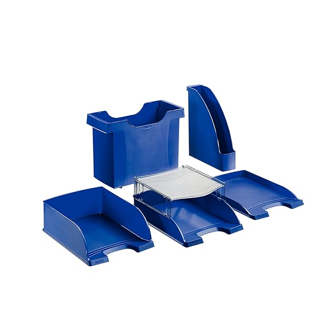 LEITZ ライツ プラス レタートレー スリム A4 縦型 200枚用 書類整理 書類収納 小物収納 ファイル収納 机上 デスクトレー 書類トレー レターケース 収納ボックス ファイルケース 卓上レターケース オフィス 学校 資料 カタログ パンフレット 冊子 雑誌 ブルー 5237-10-35: