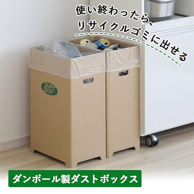 下村企販 ゴミ箱 ダンボール ダストボックス 2個組 【日本製】 強化ダンボール 脚付き 45L 簡単組み立て リサイクルに出せる 分別 エコ 野外 イベント キャンプ 燕三条 16048