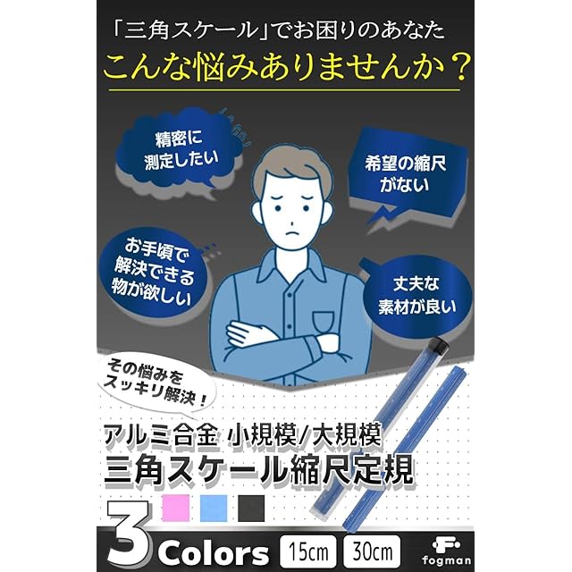 fogman 三角スケール アルミ合金 縮尺定規 15cm 30cm 小規模 大規模 収納ケース付き (小規模, 15cmピンク)