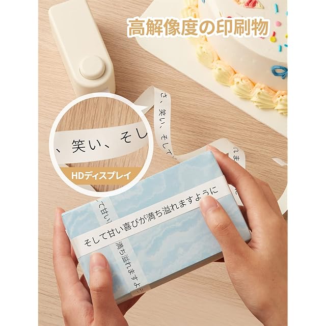 幅16mm×長さ4mのアップグレード仕様で、余白が少なく、段ボール、トレイ、花瓶、ガラス、木材、金属、PVC、紙など様々な素材の表面に貼付可能。剥がしても糊残りがありません。
