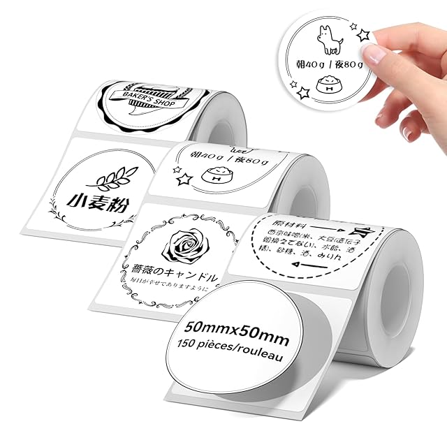 【NIIMBOTラベル】このサーマルラベルテープは、NIIMBOT/JDENS B1/B21/B31 に特に適しています。ホワイトラベル用紙は合計 3ロールあり、サイズは 50x50mm、各ロールには 150枚のプリンターラベルが入っています。