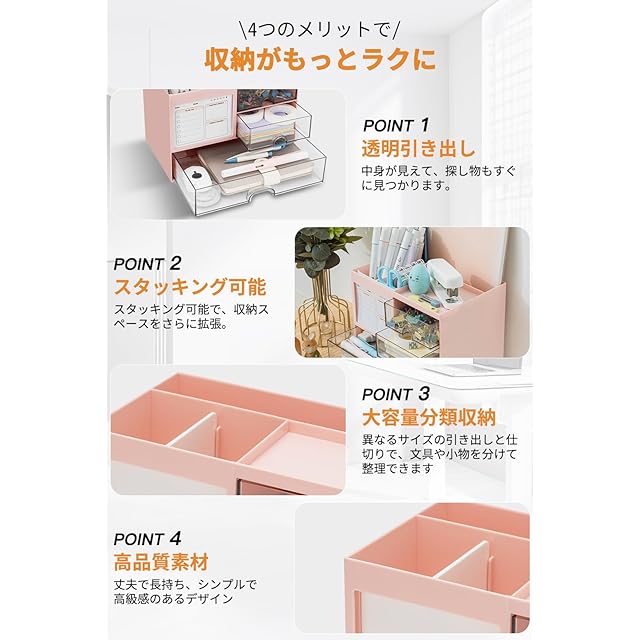 【便利収納ケース】この卓上収納は設置が不要で、単なるデスクトップ文具収納以上のものを提供します。 透明な引き出しなので中身が見やすく、必要なアイテムを簡単に見つけることができます。 さらに、デスクオーガナイザーを利用して、他の日用品を手の届くところに保管することもできます。