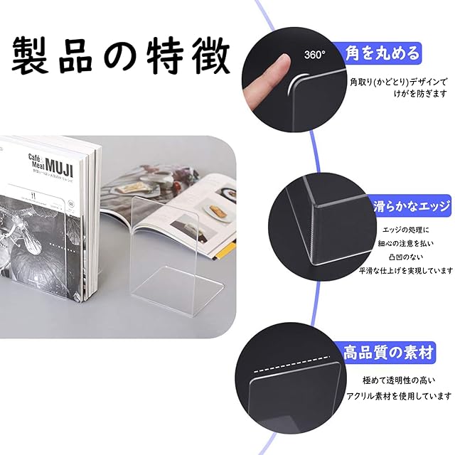 ✅高品質-高品質のアクリル素材で作られたブックエンドは、複数の本を収納するのに十分な強度があります。