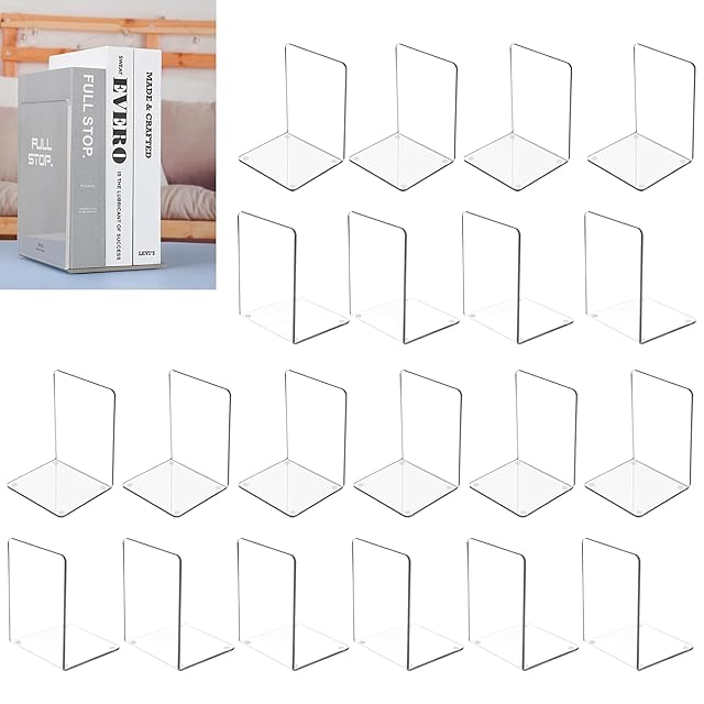 MerryNine アクリルブックエンド 20個 棚用 透明本立て オーガナイザー ブックホルダースタンド 装飾 丈夫な本用ブックストッパー (18cm x 12cm 10組)