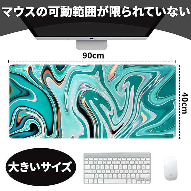 Benvo マウスパッド 超大型 防水 ゲーミング マウスパッド 90*40cm キーボードパッド 滑り止めゴム底 滑り止め マウス対応 耐洗い表面 快適操作性 不整なパターン 緑 大理石紋