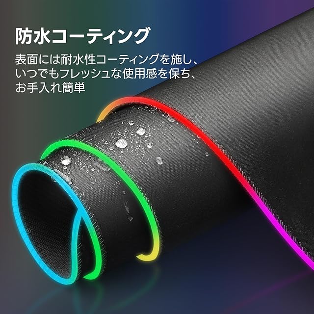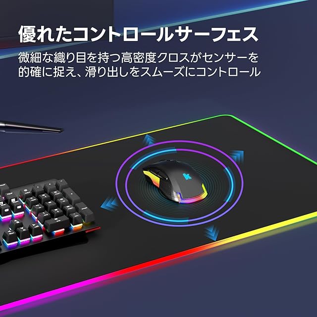 800×300x4mm大型RGBマウスパッド:マウス、フルサイズキーボード、その他デスクアイテムを余裕で配置可能。低DPI派ゲーマーや広い操作領域を求める方に最適で、デスクは常にスッキリ