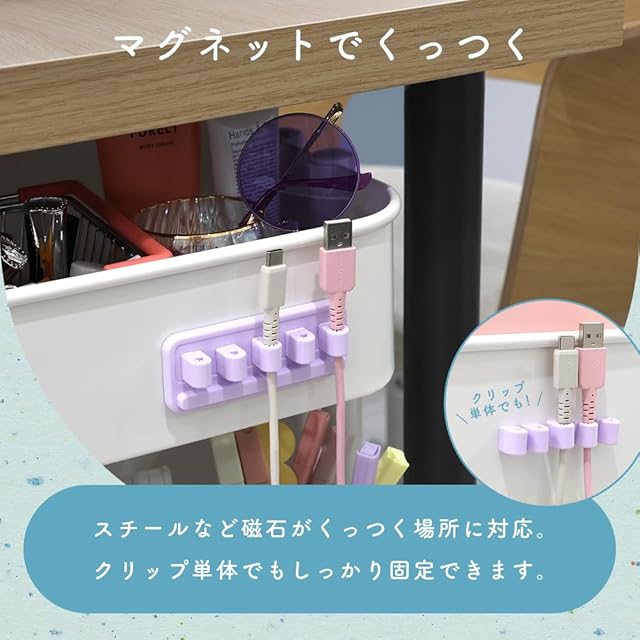 デスクのケーブル収納に:クリップにマグネットがついてるので、簡単に付けたり外したりができて便利です。 デスクの上で散らかりがちなケーブルもスマートに収納できますよ。