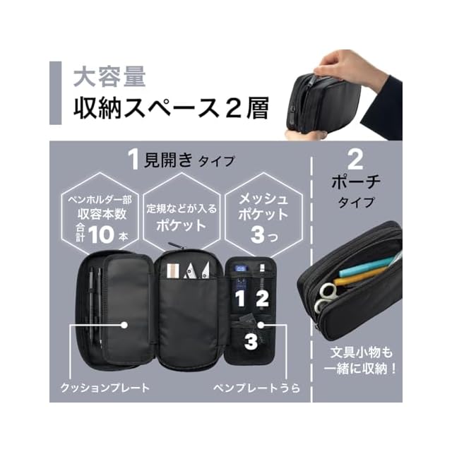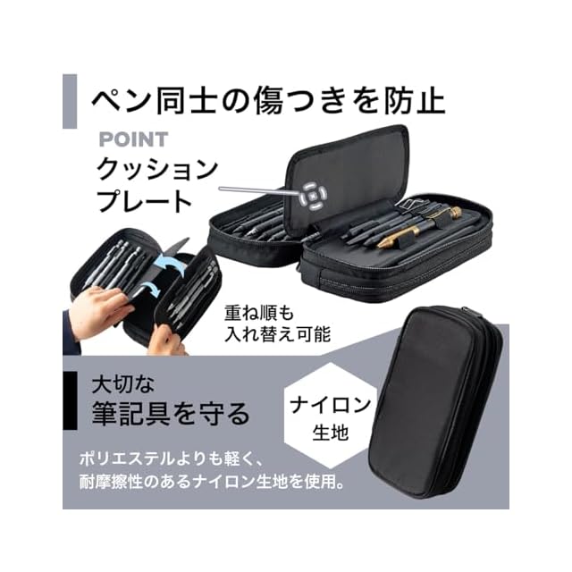 1.ペンホルダー:5本収納可能、ペンを隠さず保護するクッションループ