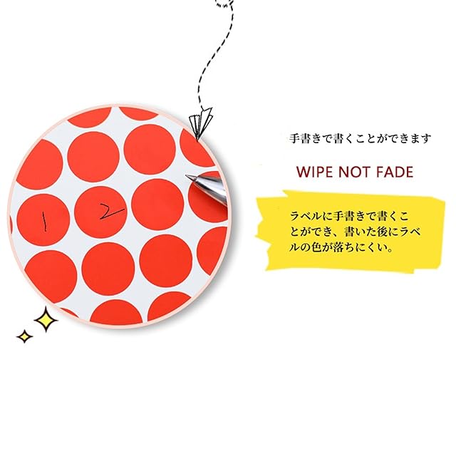 商品用途:カラー丸ラベル、オフィス、学校、資料整理、地図マークに適用し、地図マークと書類管理にも使用できる。また、粘り気が強く、ボトルやカレンダーに貼ることもでき、マーキングに便利です。色分け、ラベル、ファイリング、整理、フォルダ分類、書類、在庫管理、識別など、封筒、招待状のシールなどに用いることもできる。