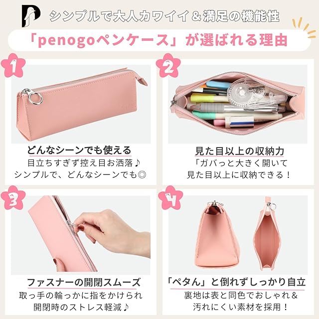 ✅ 飽きのこないシンプルな作りでおしゃれな大人可愛いペンケース