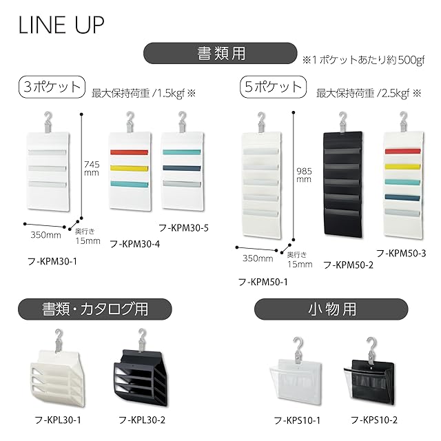 【最大保持荷重】 1.5kgf(1ポケットに付き500gf) 【対応サイズ】 A4