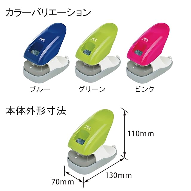 プラス 針なしホッチキス ペーパークリンチ 卓上型 12枚綴じ 2穴ファイリング対応ゲージ付 グリーン 31-211