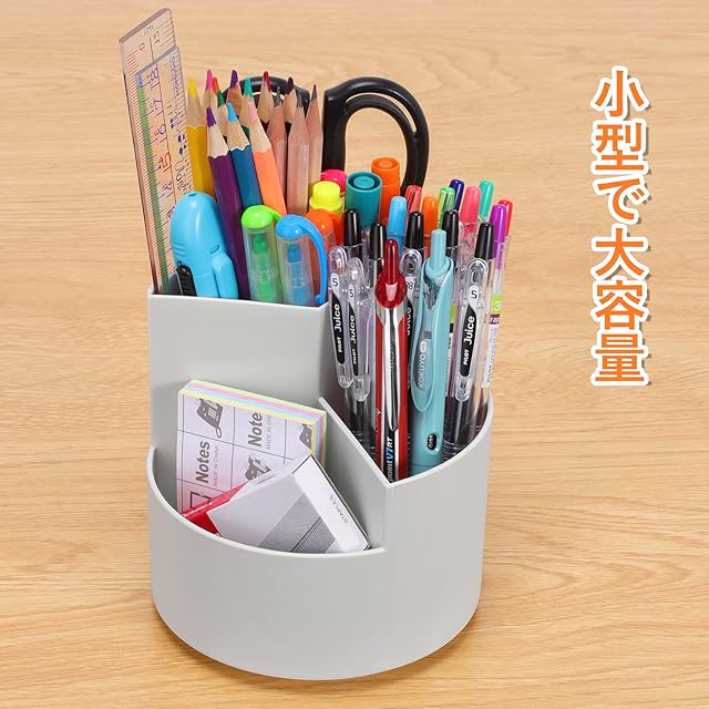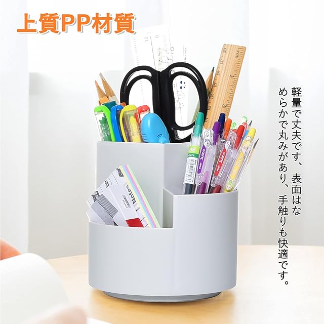 Homdolaser ペン立て 360度回転 ペンホルダー ペンスタンド 大容量 ぺんたて 3グリード分類鉛筆たて 回転ペンホルダー 多機能 分類箱 小物分類卓上収納 文房具 化粧品 収納 便利 オフィス 家庭生活用 収納ボックス グレー