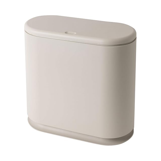 【簡易防臭】 ゴミ箱 10L スリム 蓋付き ワンタッチ開閉 プッシュ式 台座付き 転倒防止 二重構造 切り口付 2分別可 持ち手付 分別 スリム 中身が見えないゴミ箱 袋が見えない ダストボックス 防臭 キッチン トイレ リビング 洗面所 おむつ 生ごみ ペット 34×32×16cm グレージュ [SUNGRAN]