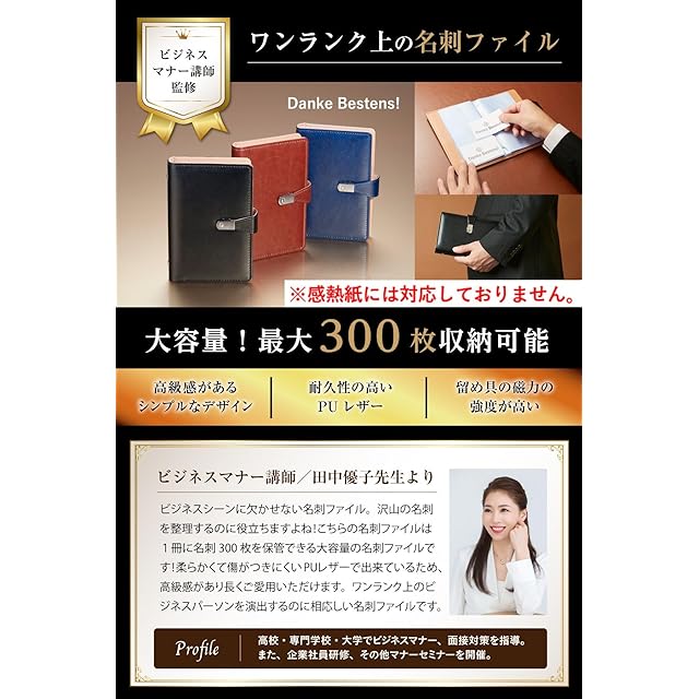 【マナーのプロ監修】名刺ホルダー 名刺ファイル レザー 【見やすく取り出しやすい300枚収納 】 名刺入れ ファイル 大容量 [Danke Bestens] (ネイビー)