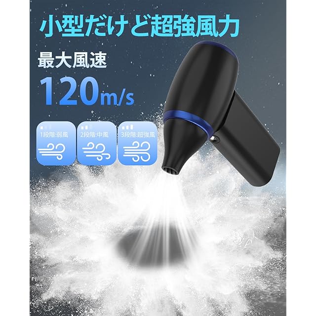 エアダスター 電動エアダスター ブロワー洗車 ブロアー 超強力250000RMP高速回転 最大風速120m/s 5000mAh大容量バッテリー TypeC急速充電 LEDライト付き 3段階風量調整 小型軽量 過熱保護 PC掃除/空気入れ/キーボード/家具/車内/エアコン/洗車用/BBQ送風機/家具掃除 日本語取扱説明書付き (Black)